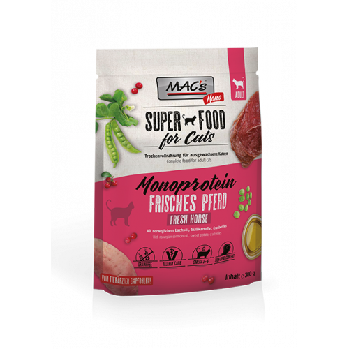 Kompletní krmivo pro vybíravé nebo obtížněji krmitelné kočky se zvýšenými nároky a citlivostí na potravu. Jediný zdroj živočišného proteinu v tomto krmivu je koňské maso. Neobsahuje obilí. Doplňující rostlinná složka je výborně stravitelný hrášek.
