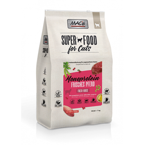 Suchá krmiva MAC´s jsou pro kočky velmi přitažlivá a chutná. Vzhledem k vysoké stravitelnosti a využitelnosti je jejich spotřeba nízká. Kočičí organismus není zbytečně opotřebováván, kočka vytváří malý úhledný nepáchnoucí bobek, který je z kočičí toalety lehce odstranitelný. Pro zpestření života kočky můžete kdykoliv kombinovat suchá krmiva MAC´s s kapsičkami, konzervami a pamlsky stejné značky. Z výživového hlediska žádné doplňky nejsou potřebné, ale vaše kočka potřebuje i svůj společenský život, komunikaci, změny a odměny od svého člověka.